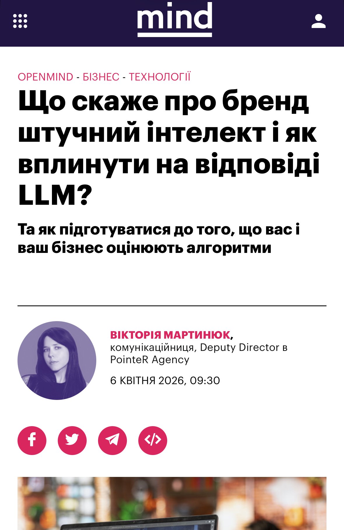 Viktoriia Martyniuk, Deputy Director of PointeR Agency, wrote a column for Mind.ua on how artificial intelligence is shaping brand reputation — and what businesses should do about it right now.