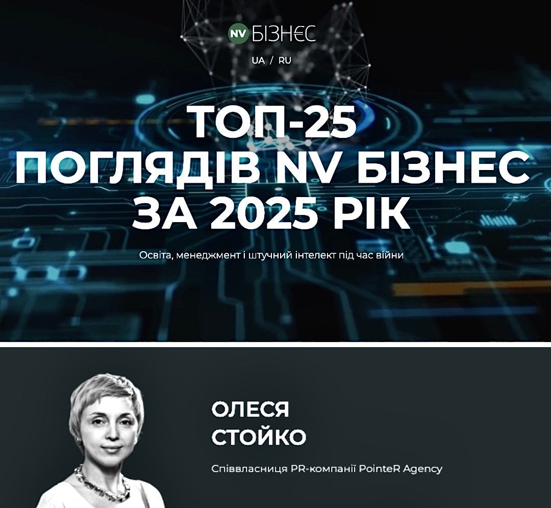 NV Business has released its annual ranking of expert columns that generated the most engagement among readers in 2025. The article by Olesia Stoiko, founder of PointeR Agency, “Society Is More Divided Than Ever: What a Global Trust Study Reveals About Our Future,” made the list of 25 most-read publications.